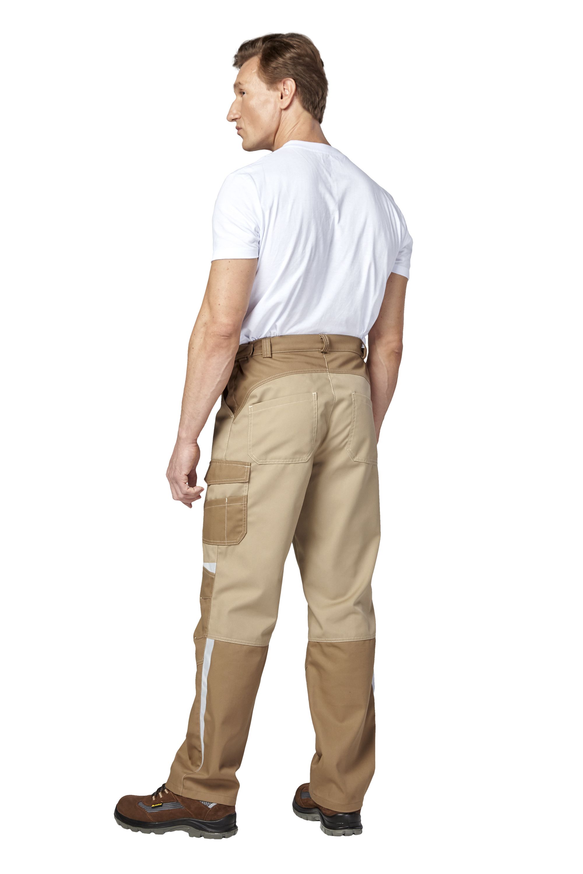 • Визуальные элементы защиты: фигурные светоотражающие элементы на уровне верхнего шва наколенника передних частей брюк, бокового шва нижних частей брюк