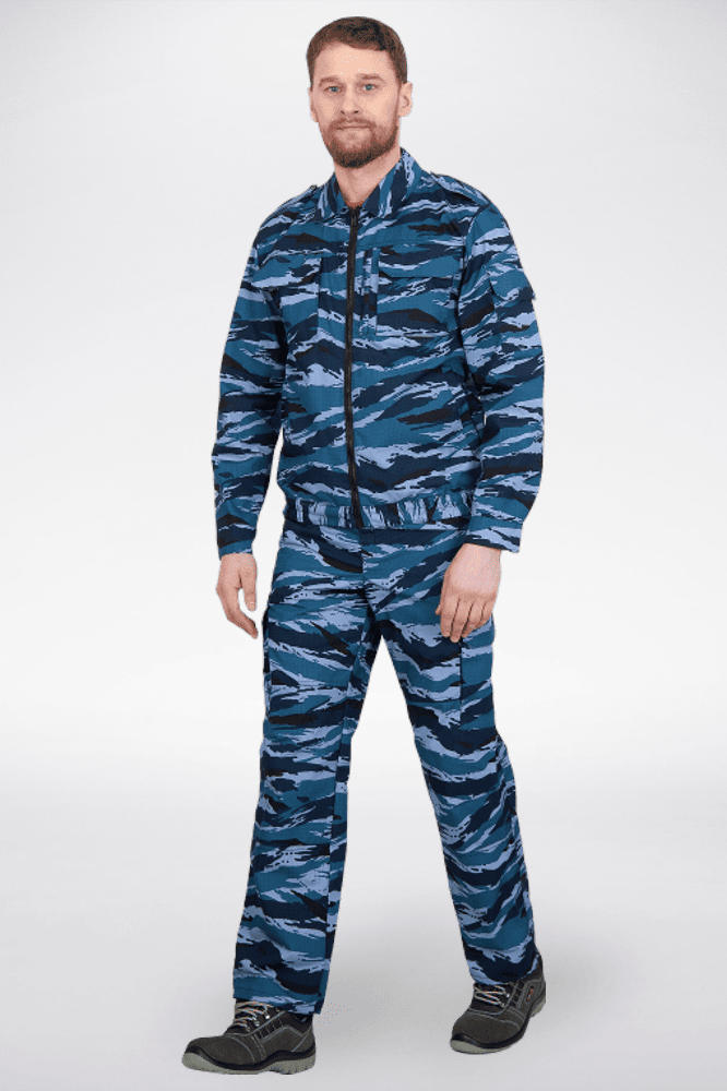 Рекомендуется для охранных структур. Состоит из куртки и брюк. Куртка прямого силуэта с центральной застежкой на молнию, отложным воротником. Оснащен нагрудными накладными карманами с клапанами на липучках, имеется карман на молнии для документов. На рукаве накладной карман с клапаном. Регулировка объема по низу брюк резинкой.