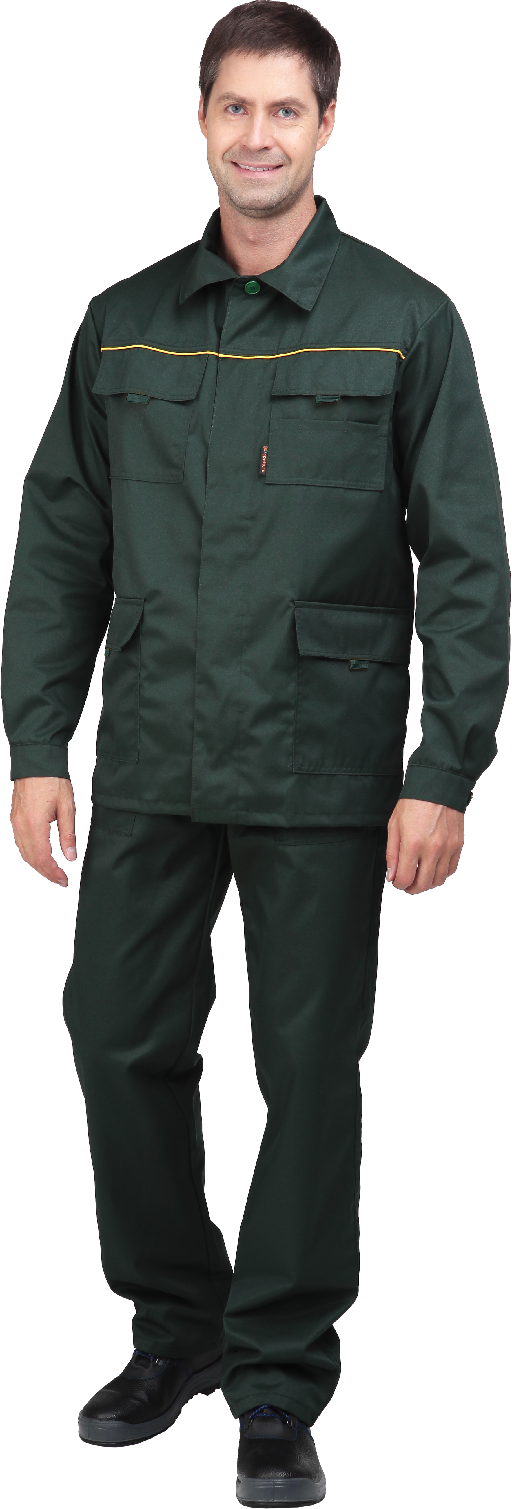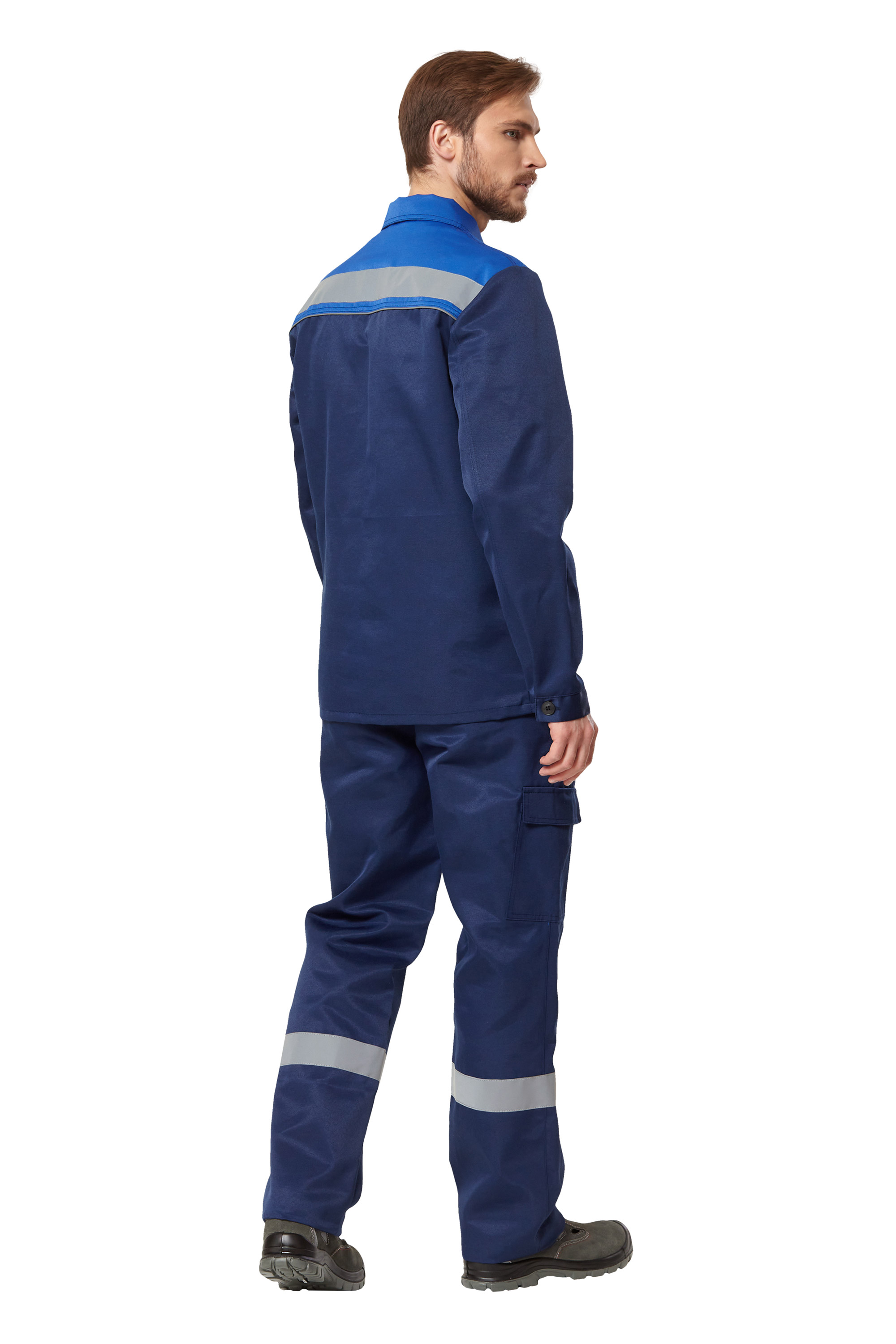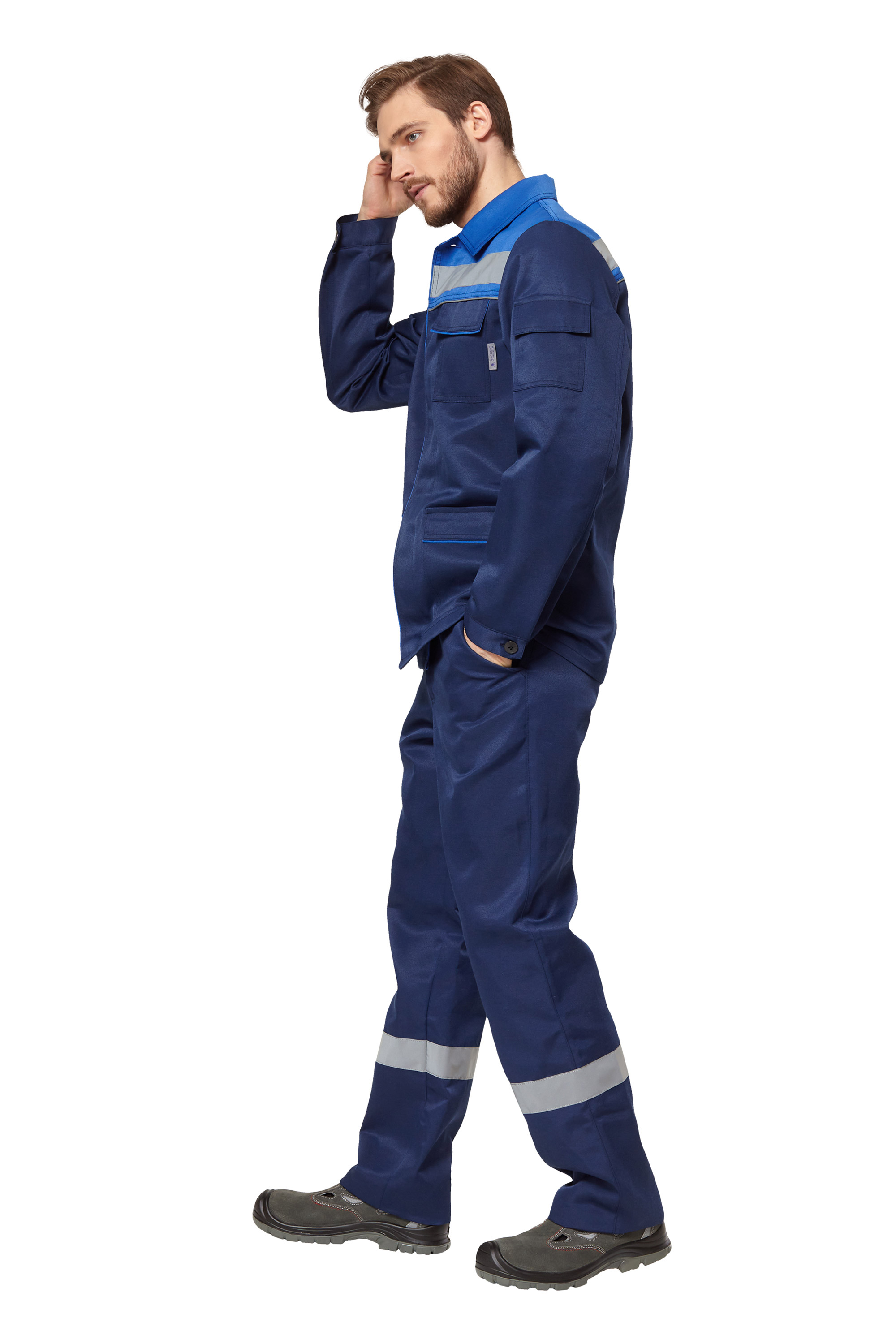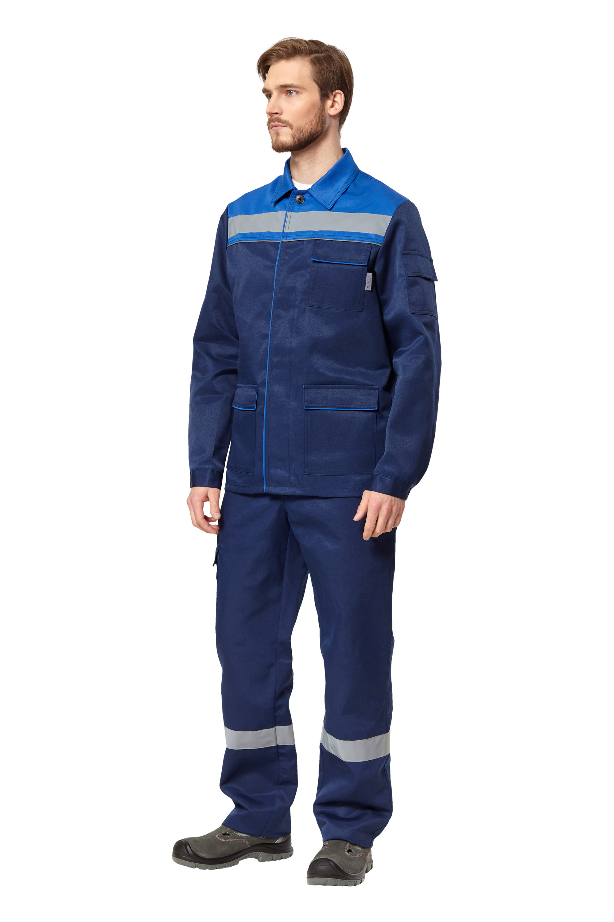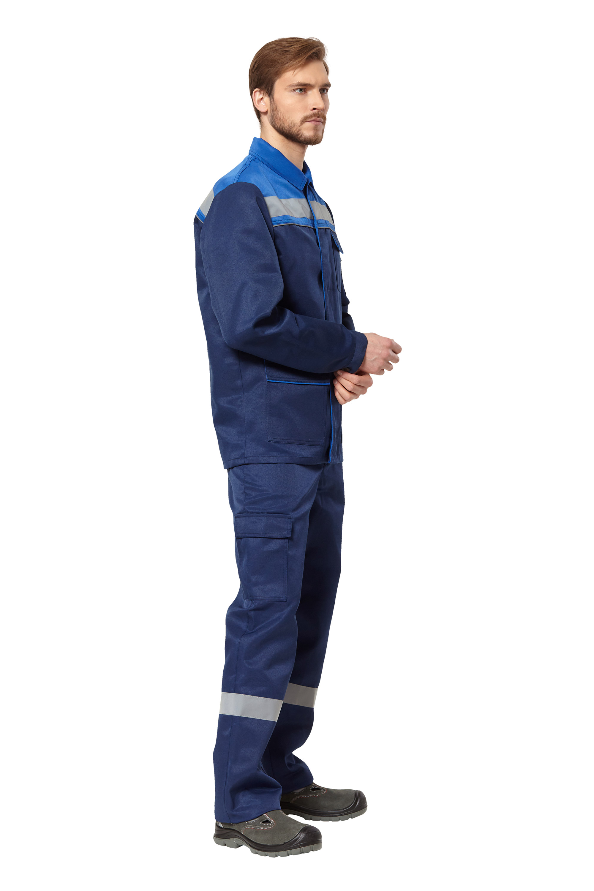 Костюм классического фасона из куртки и полукомбинезона со светоотражающим кантом и полосами 50 мм шириной.