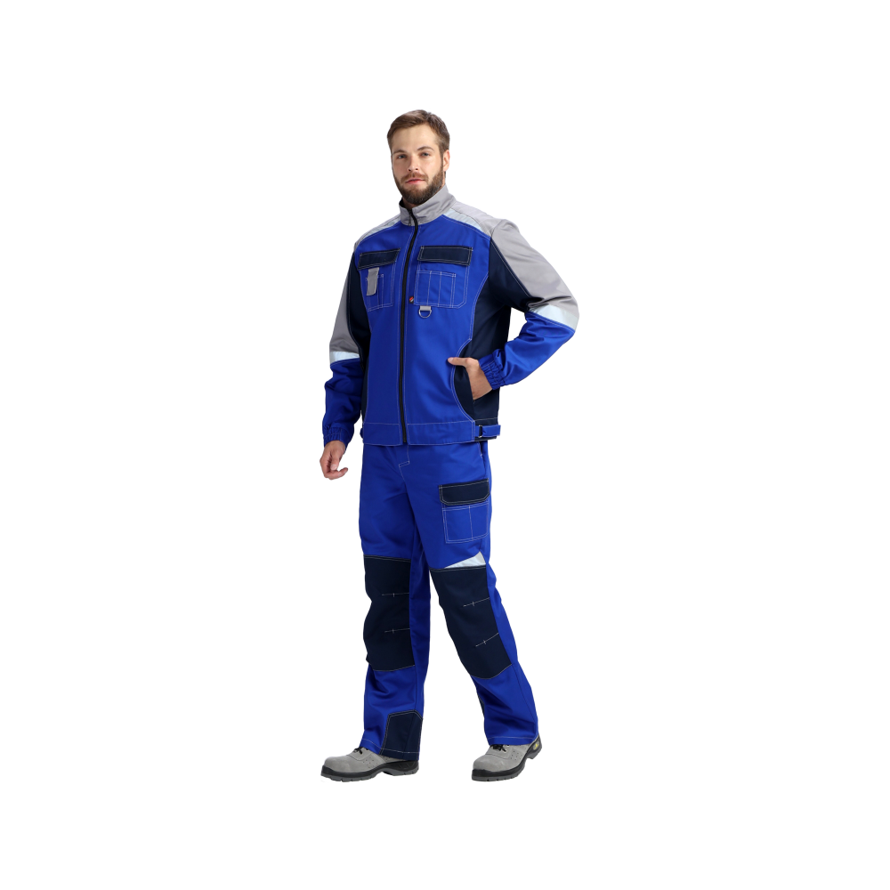 Костюм мужской рабочий «Формула» изготовлен в соответствии с ГОСТ и включает в себя два предмета: рабочая куртка мужская + брюки рабочие. Укороченная куртка удобно застегивается на молнию, оснащена поясом с регулировкой по ширине. Для безопасной работы в местах с плохим освещением предусмотрены светоотражающие полосы. Благодаря яркой контрастной отделке рабочая форма заметна издалека даже днем. Боковые и нагрудные карманы с клапаном на липучке предназначены для записей и мелочей. Рабочие брюки усилены дополнительной тканью в районе коленей и шагового шва снизу. В многозональных карманах разного типа и размера удобно хранить инструменты и расходники. Комфортную работу в неудобных позах обеспечивает анатомический крой коленей и локтей, а также возможность размещения ЭВА-вкладышей в карманы-наколенники.