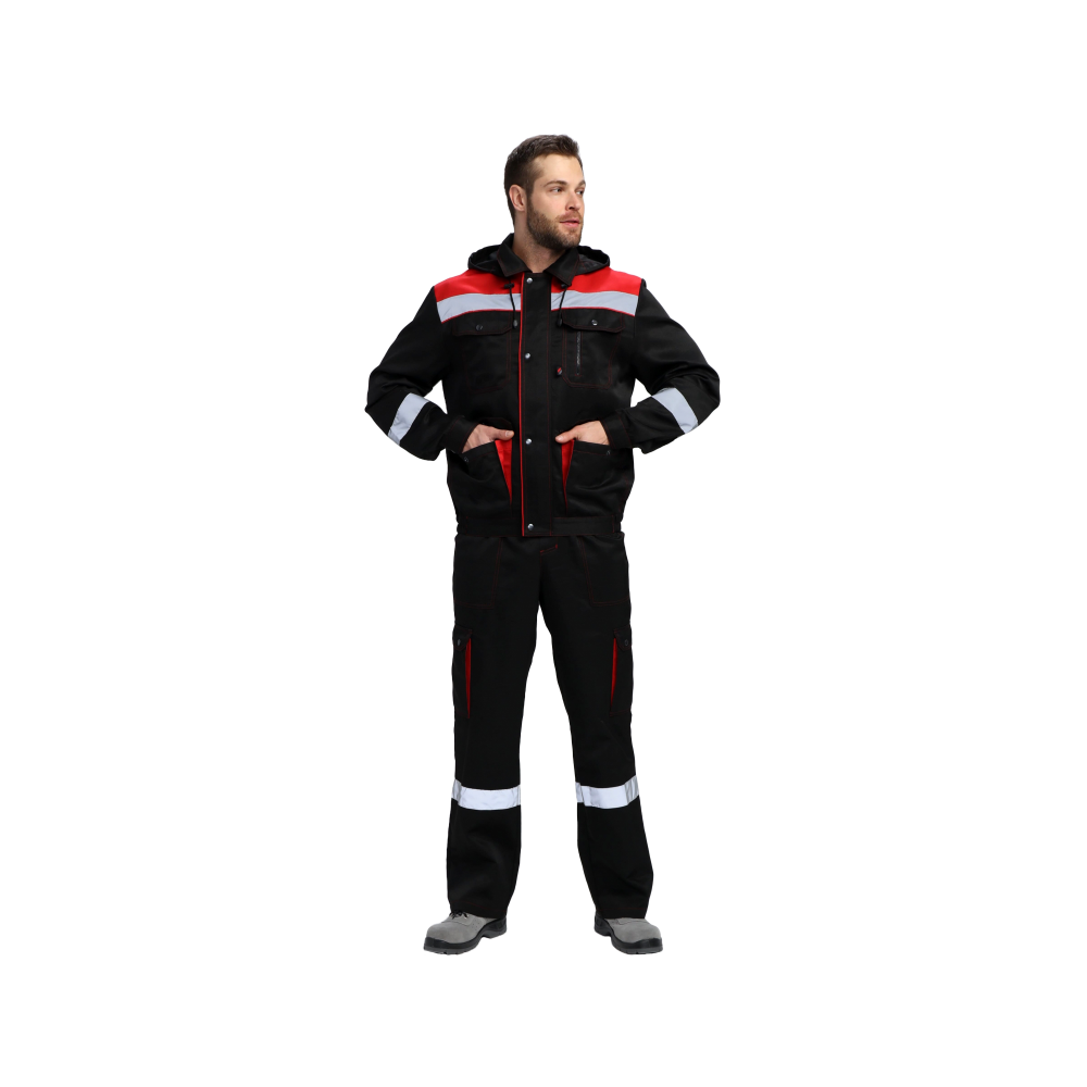 Рабочий костюм мужской «Титан-2 СОП» состоит из двух элементов: мужская рабочая куртка + полукомбинезон рабочий. Спецодежда мужская оснащена широкими светоотражающими полосами 50 мм, благодаря чему подходит для работы в местах с плохим освещением. Костюм изготовлен в соответствии с ГОСТ из плотного материала с водоотталкивающей пропиткой. Укороченная куртка рабочая на молнии удобна в работе и отличается длительным периодом эксплуатации. Защиту от осадков и ветра обеспечивают съемный капюшон с регулировкой по лицу и ветрозащитная планка, застегивающаяся на кнопки. Рабочий полукомбинезон на бретелях с регулировкой по длине и поясом на резинке отлично садится по фигуре. Униформа дополняется удобными объемными карманами, что помогает сохранять в целости записи и расходники.