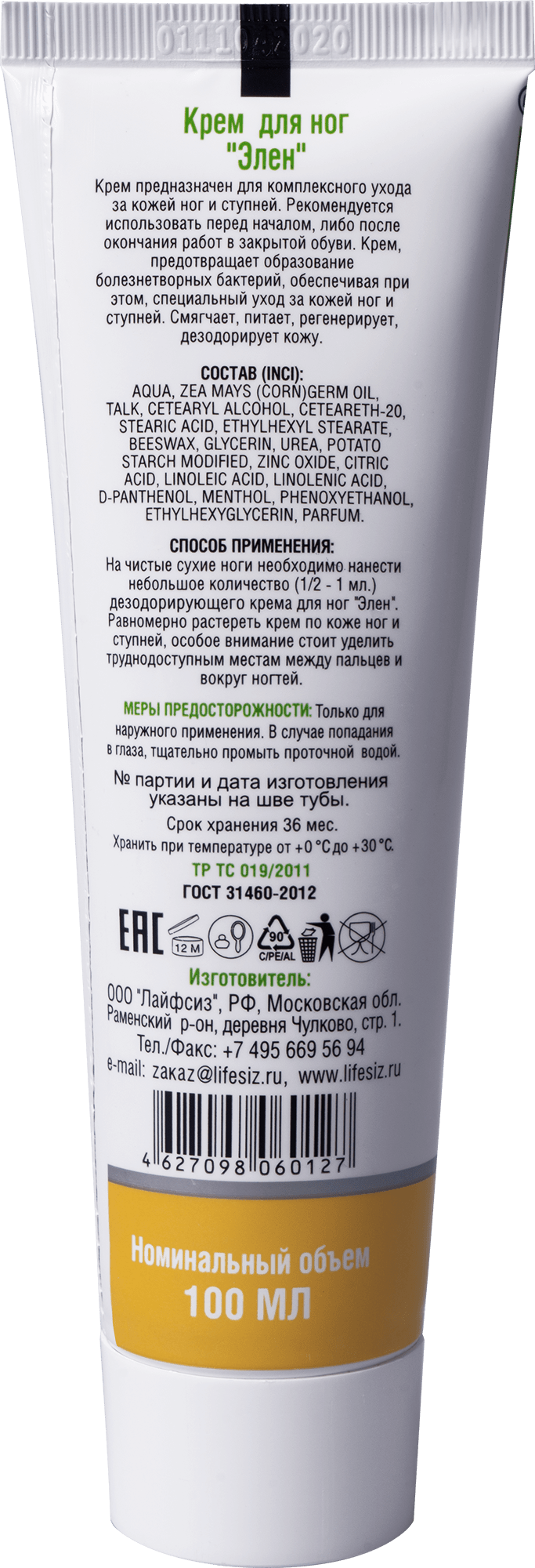 Создан для комплексного ухода за кожей ног и ступней. Крем для ног рекомендуется использовать перед началом либо после окончания работ в закрытой обуви.