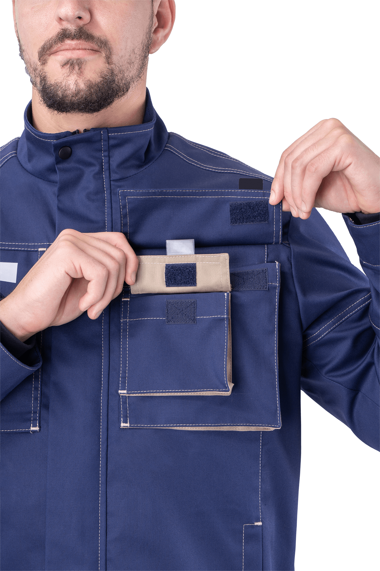 • в правом нагрудном кармане под клапаном петля на кнопке для крепления