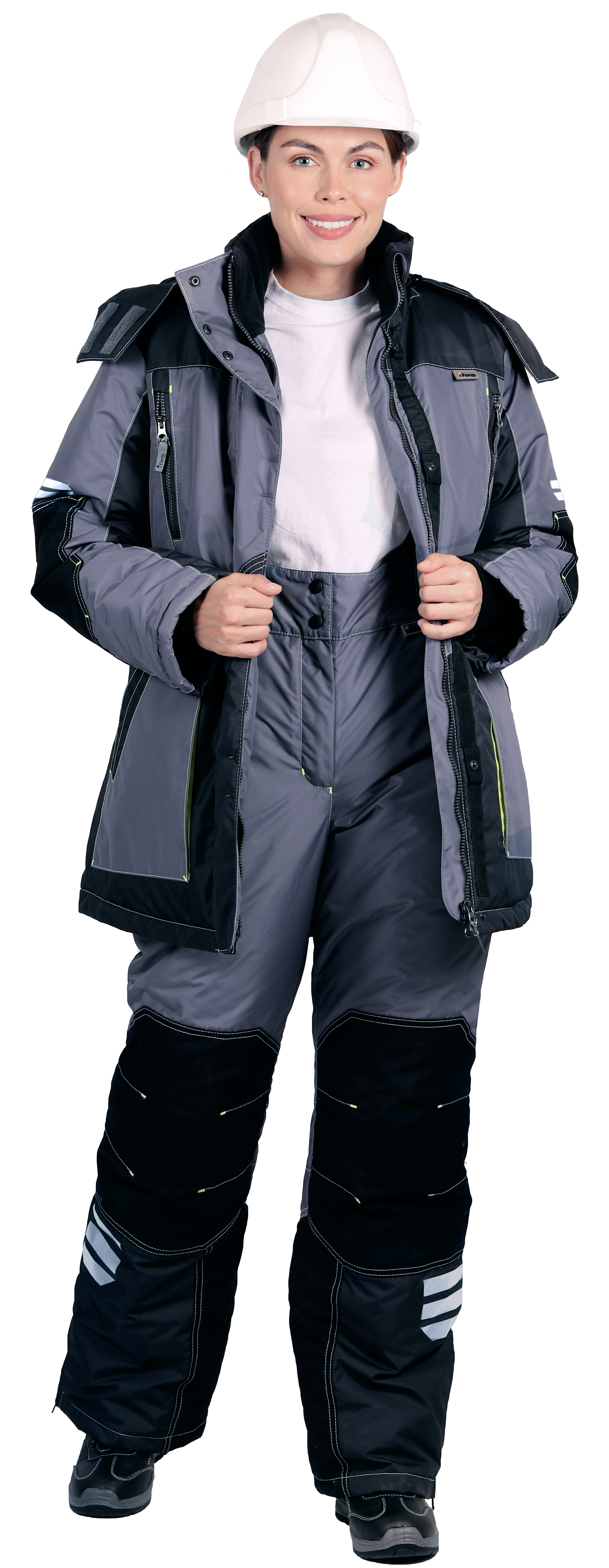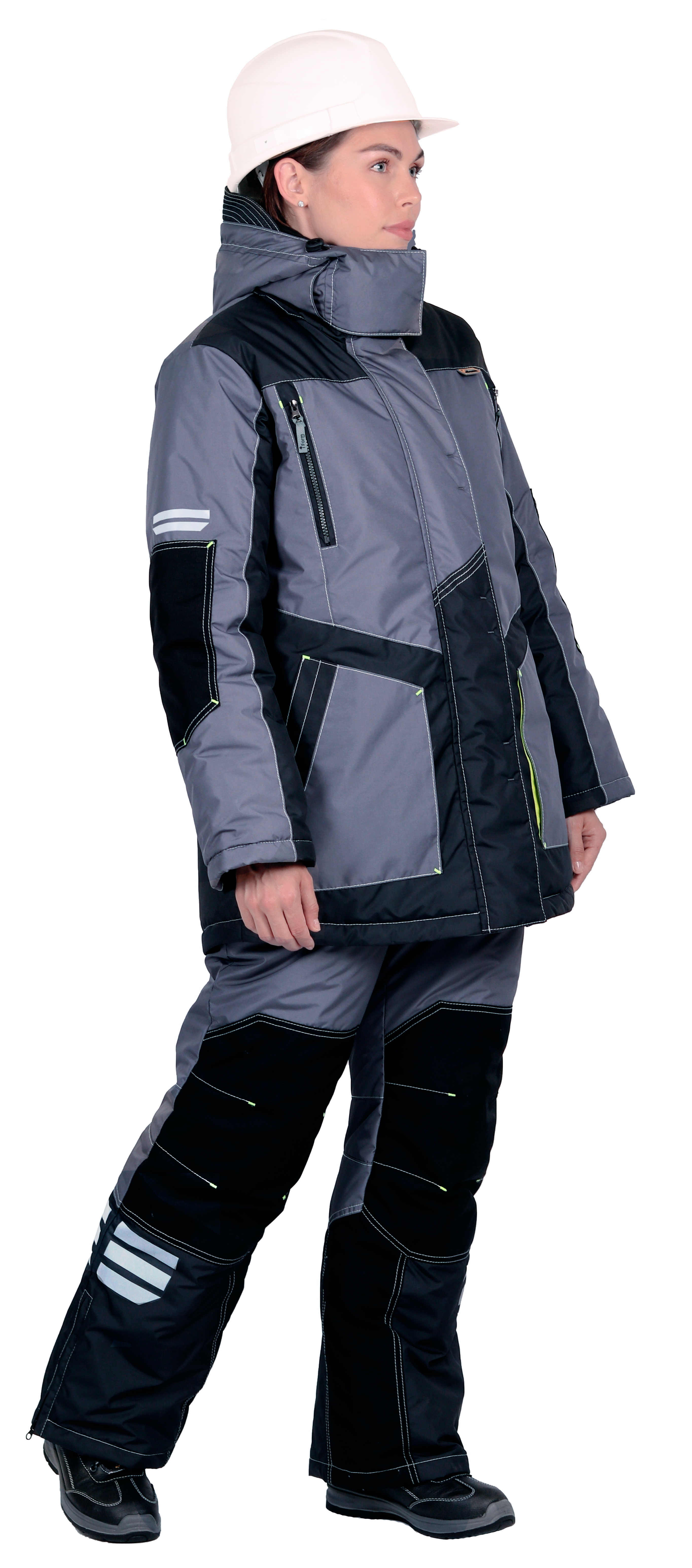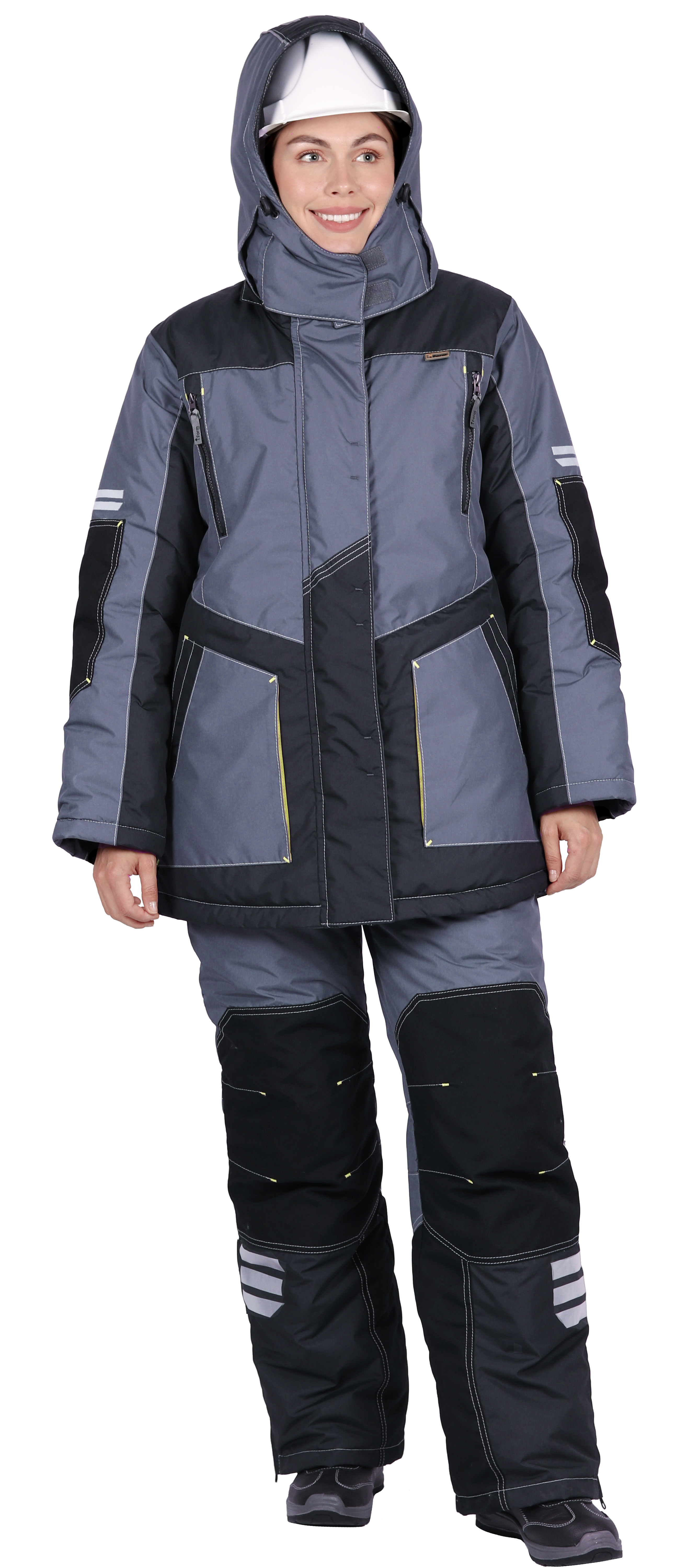 Куртка ЭДВАНС зимняя, серый-т.серый-лимонная отделка, женская