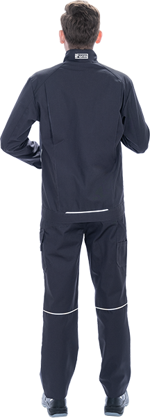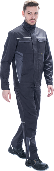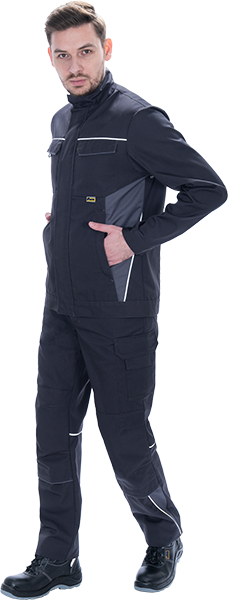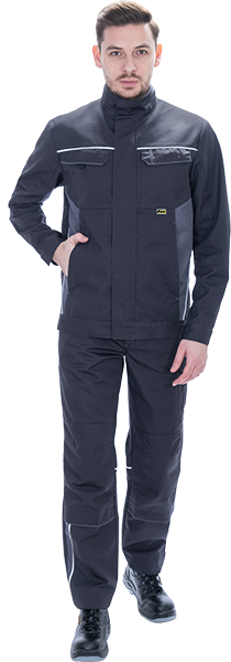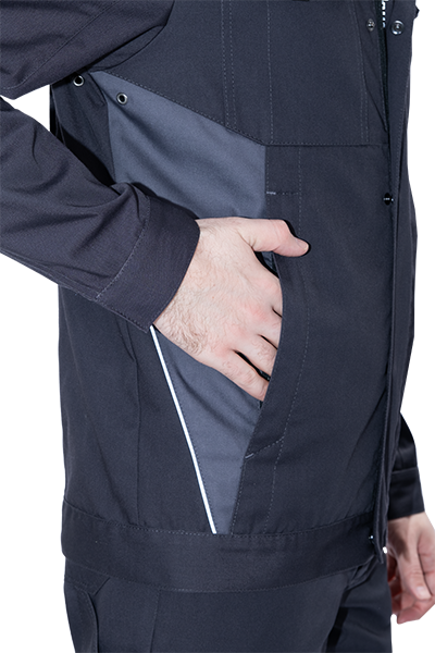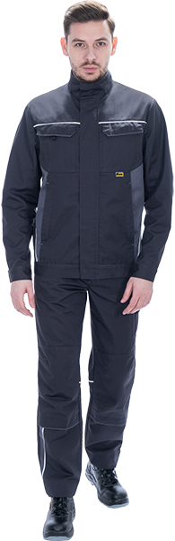 • световозвращающая двухсторонняя лента в виде канта по кокеткам полочек, по наклонным боковым вставкам куртки, по центральной части спинки вдоль пояса обеспечат видимость работника при плохом освещении и в темное время суток