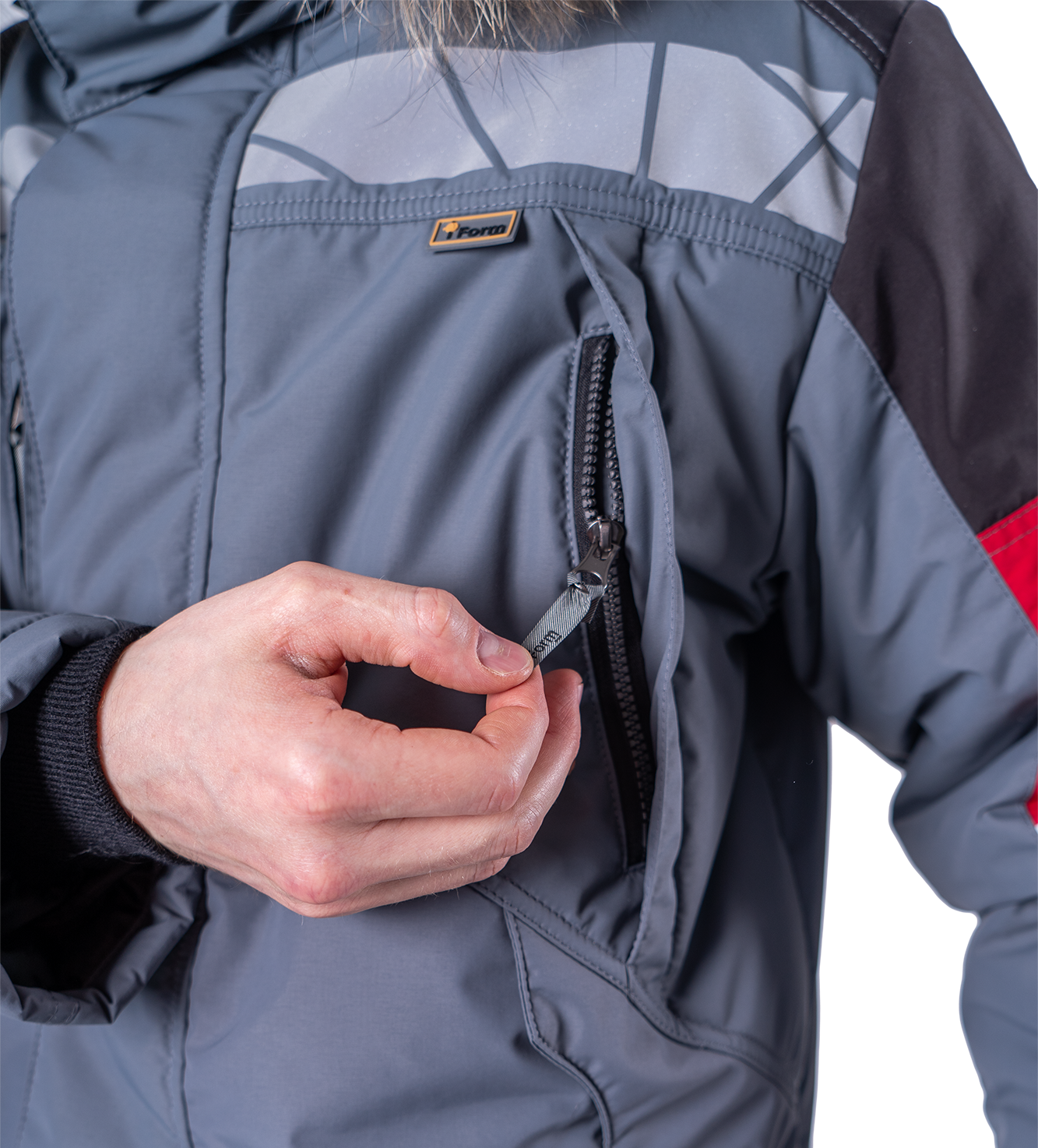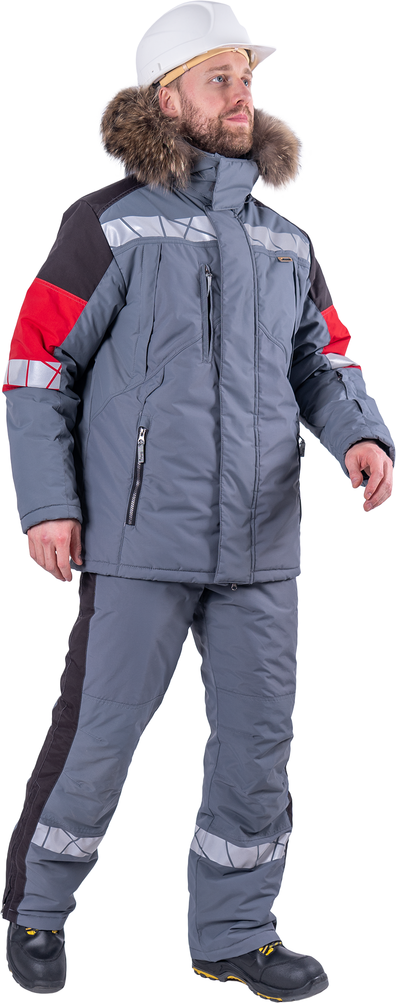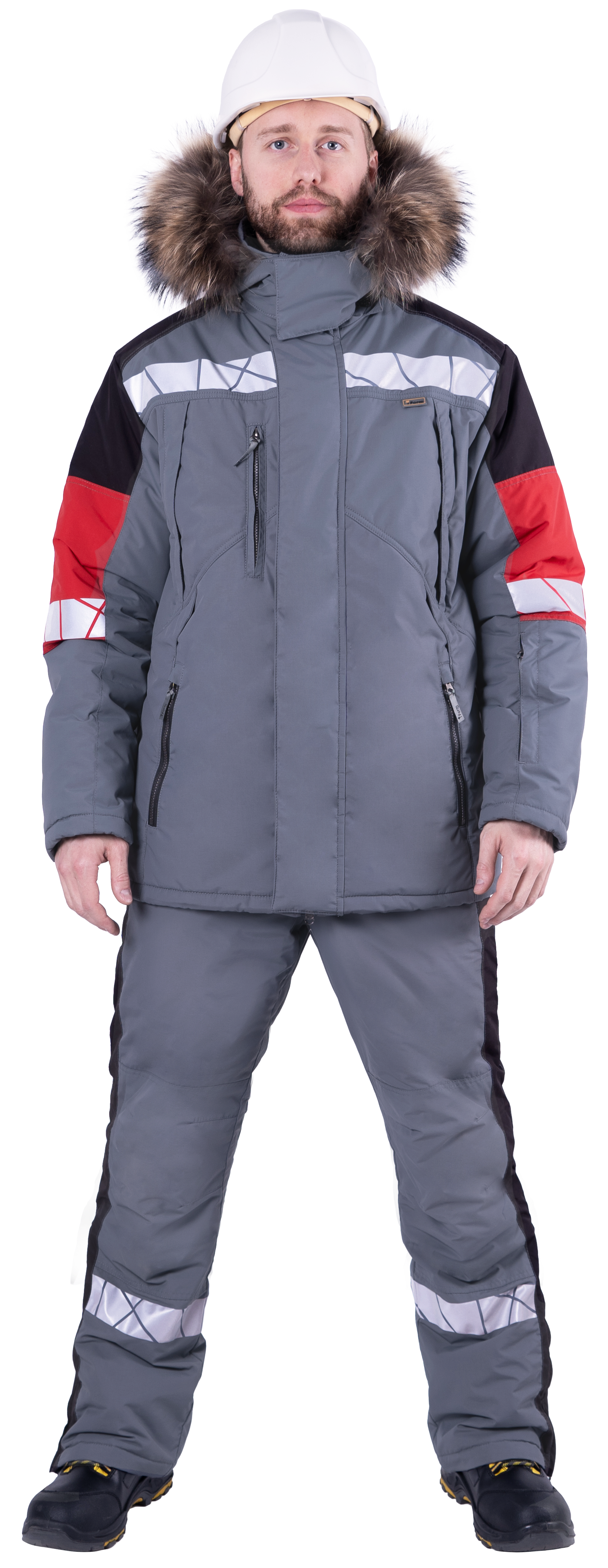 Куртка ХАЙ-ТЕК SAFETY зимняя, серый-красный-черный