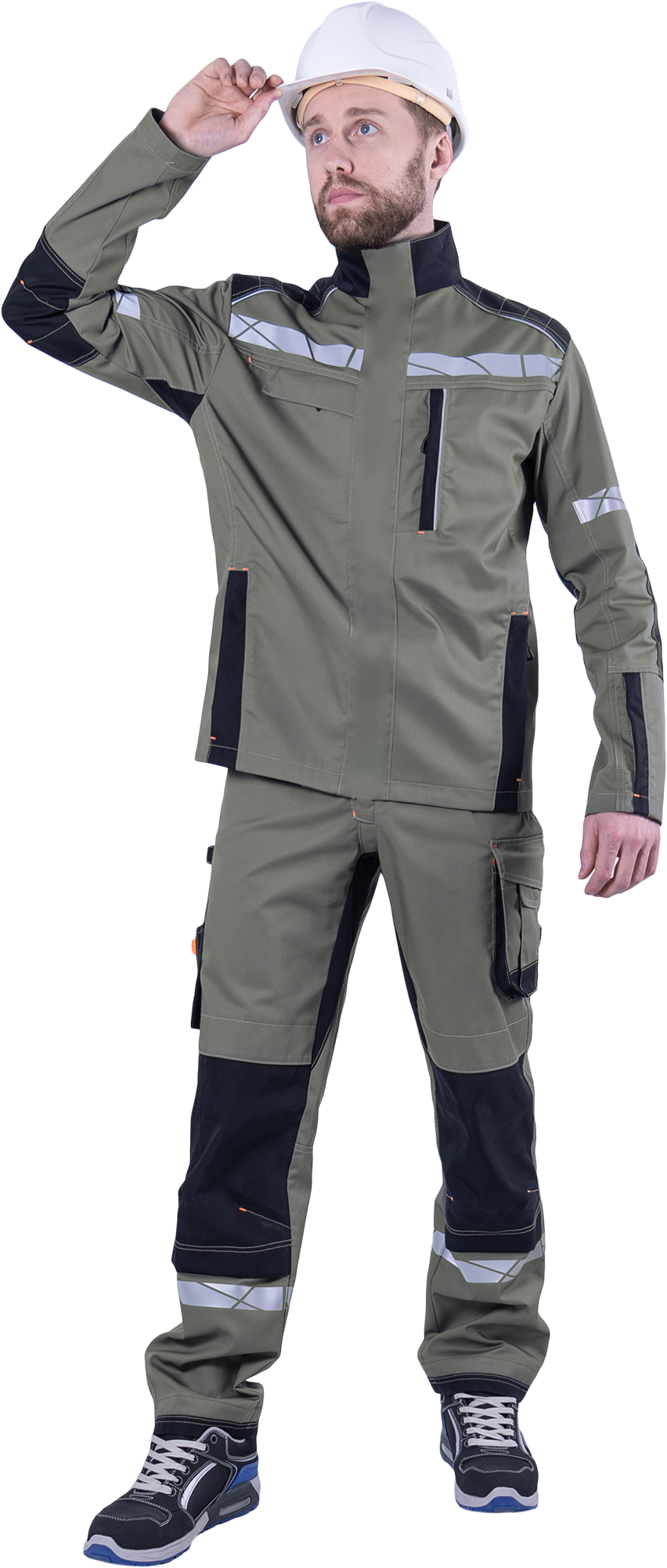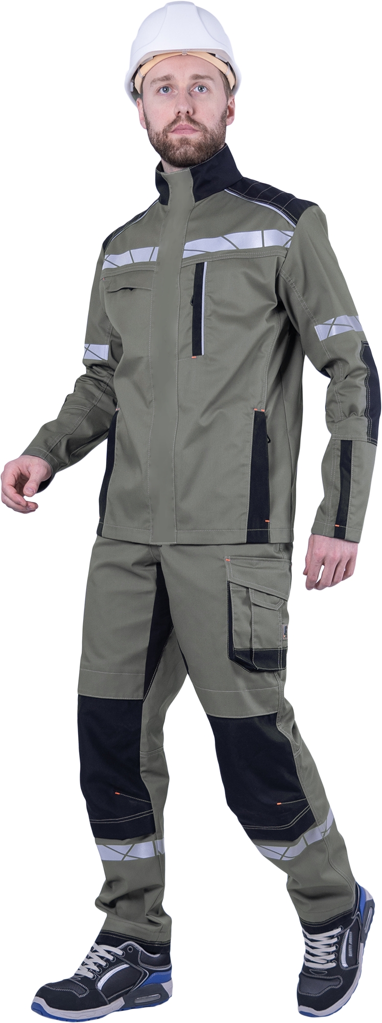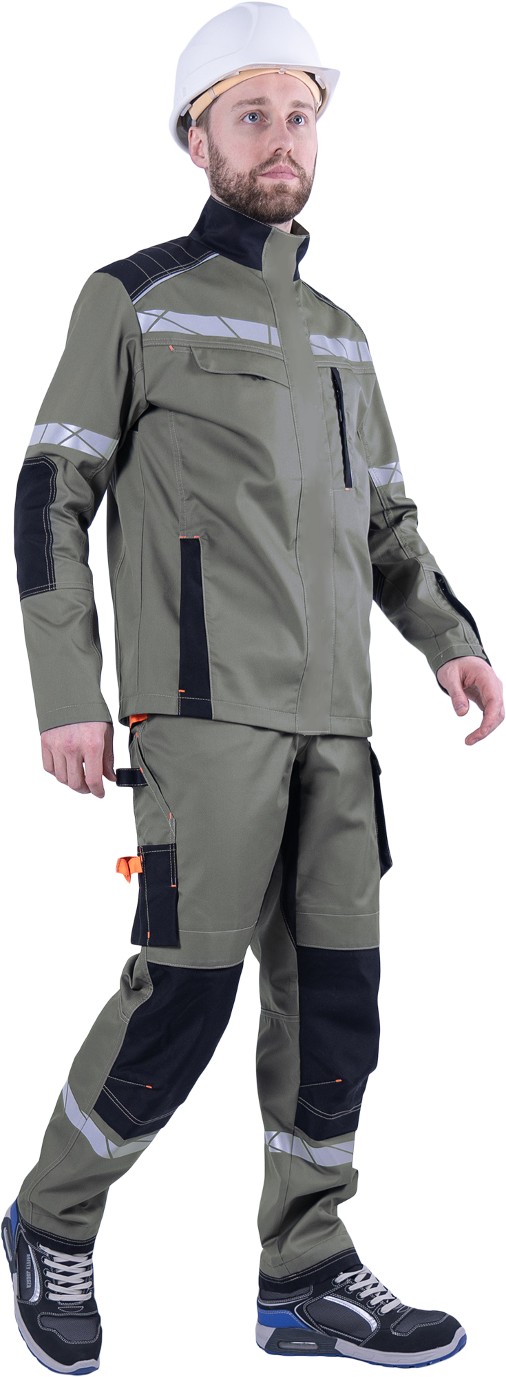 • рукава, соответствующие естественному положению рук при работе, налокотники с вытачками из износостойкой ткани (100% полиамид 6.6)