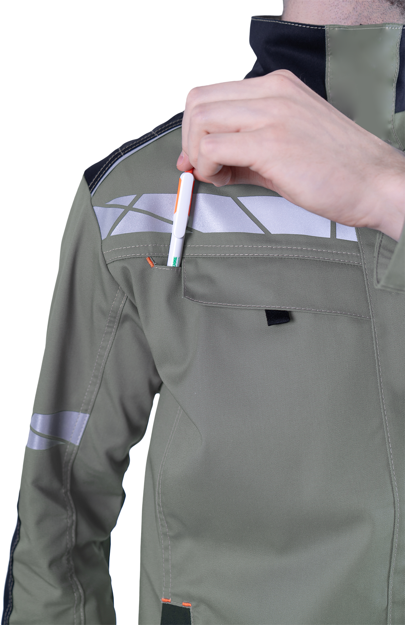 • по кокетке спинки, плечевой вставки полочки, в нагрудном вертикальном кармане кант из двухсторонней световозвращающей полосы