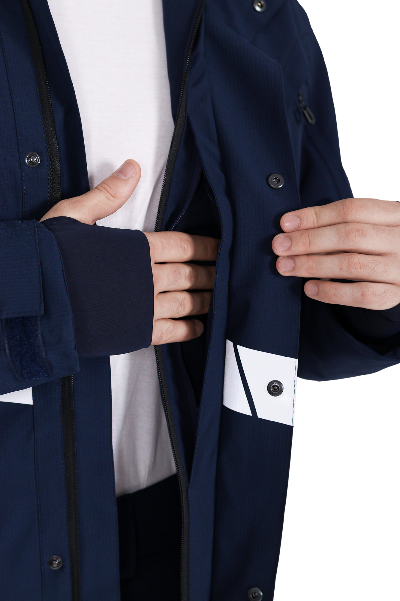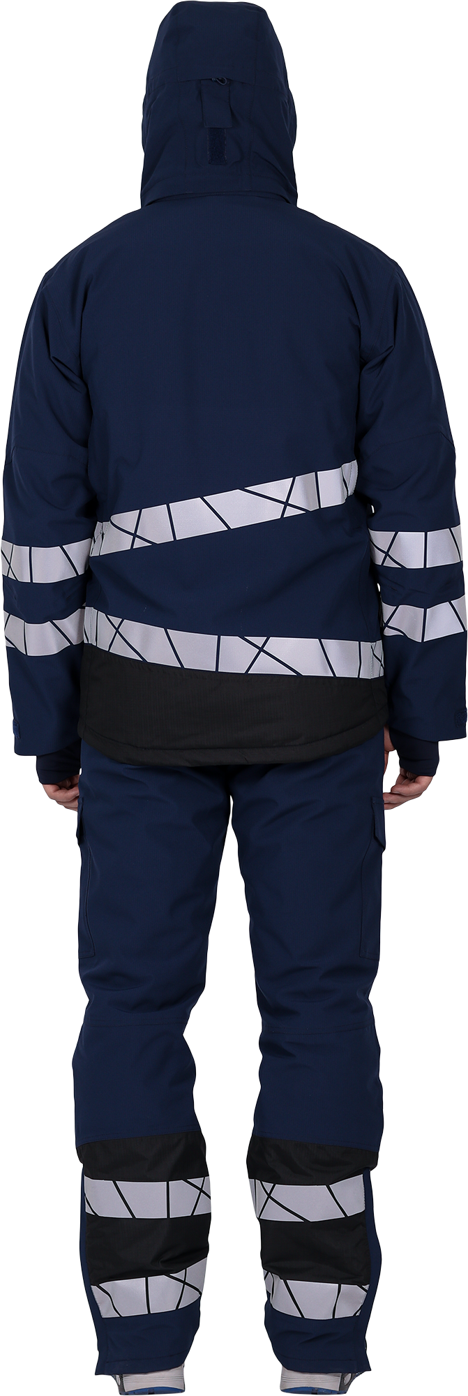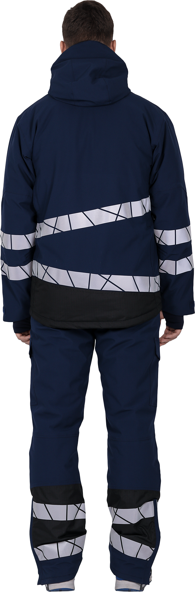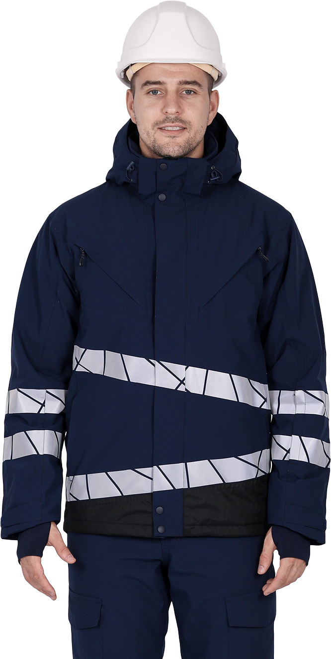 • две охватывающие термолкеевые световозвращающие полосы шириной 50 мм по торсу куртки и рукавам