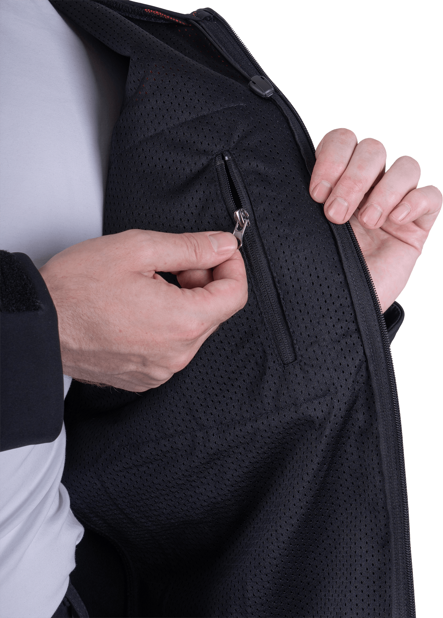 • нагрудные карманы с застёжкой на молнию