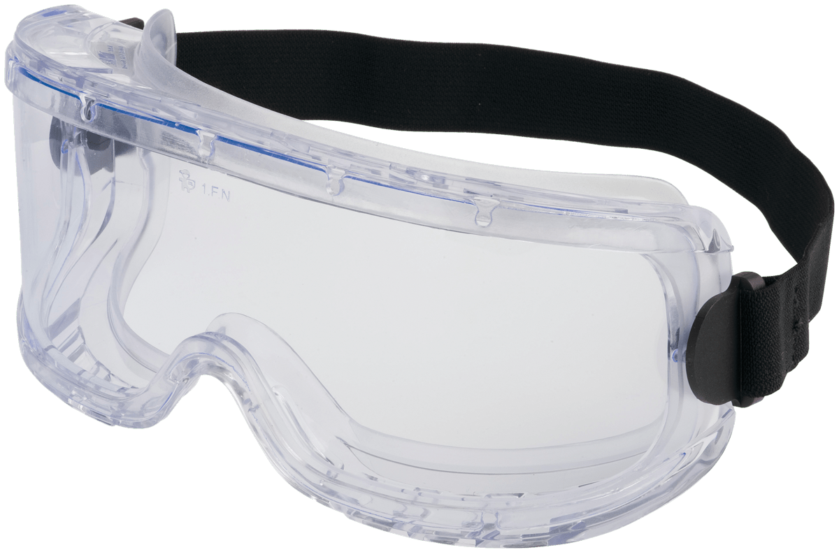 Закрытые очки экстра-класса с непрямой вентиляцией для защиты глаз спереди и с боковых сторон от высокоскоростных летящих частиц с низкой энергией удара, УФ-излучения, а также от воздействий растворов кислот и щелочей.
