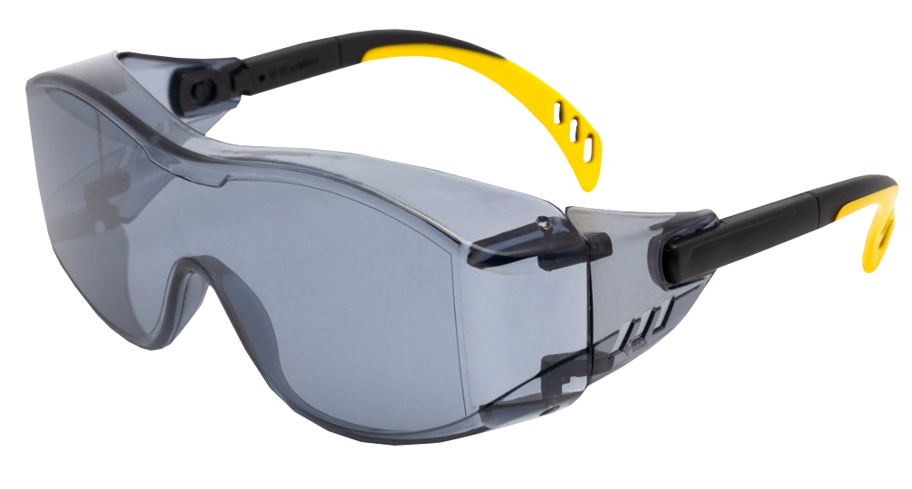 Регулируемые по длине и углу наклона двухцветные удобные дужки с мягкими заушниками, созданные с применением инновационного материала ТЭП (тэрмоэластопласт) и соединенные с монолинзой встроенными винтами, обеспечивают универсальную настройку для любого типа головы и лица, что гарантирует защиту от оптических искажений, а также позволяет использование данной модели с корригирующими очками. Защитное панорамное стекло отличается высокими оптическими характеристиками, эргономика дужек обеспечивает комфортную посадку без точек давления и создает возможность адаптировать очки под индивидуальные требования пользователя в различных отраслях и видах деятельности, в том числе в химических лабораториях, нефте- и газоперерабатывающей промышленности.