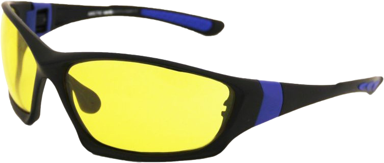 Защитное стекло-светофильтр желтого цвета из поликарбоната с твердым покрытием на наружной стороне и с незапотевающим покрытием на внутренней, обращенной к глазу, стороне.