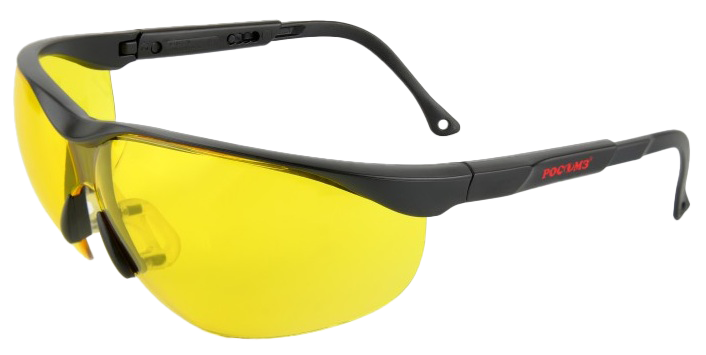 Защитное стекло-светофильтр янтарного цвета из поликарбоната с твердым покрытием на наружной стороне и с незапотевающим покрытием на внутренней, обращенной к глазу, стороне.