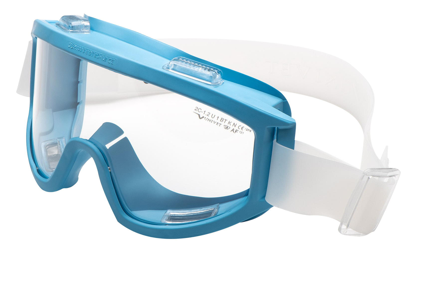 Очки закрытого типа, прозрачная поликарбонатная линза.
