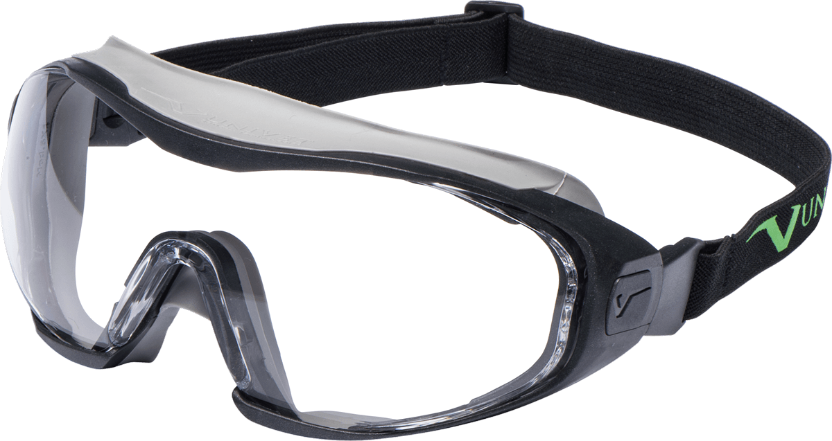 Очки закрытого типа, гибриды, с возможностью замены дужки на эластичную ленту с обтюратором из термопластичной резины.