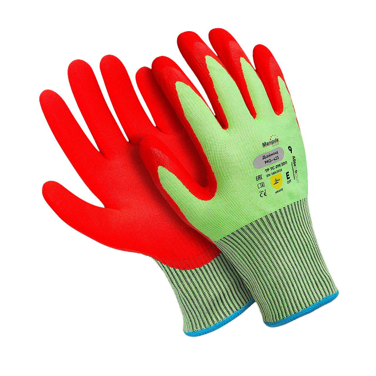Частичное покрытие из нитрильных микрогранул (песчаное) — надежный захват предметов в агрессивных средах (Нс, Нм); высокий уровень защиты от истирания
