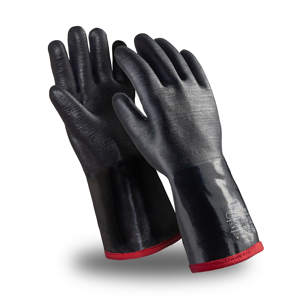 Герметичные кроеные перчатки со сплошным покрытием из многослойного неопрена для использования в максимально широком температурном диапазоне — от -35 °С до + 250 °С (подтвержденные лабораторные испытания покрытия — от -50 °С до +500 °С)