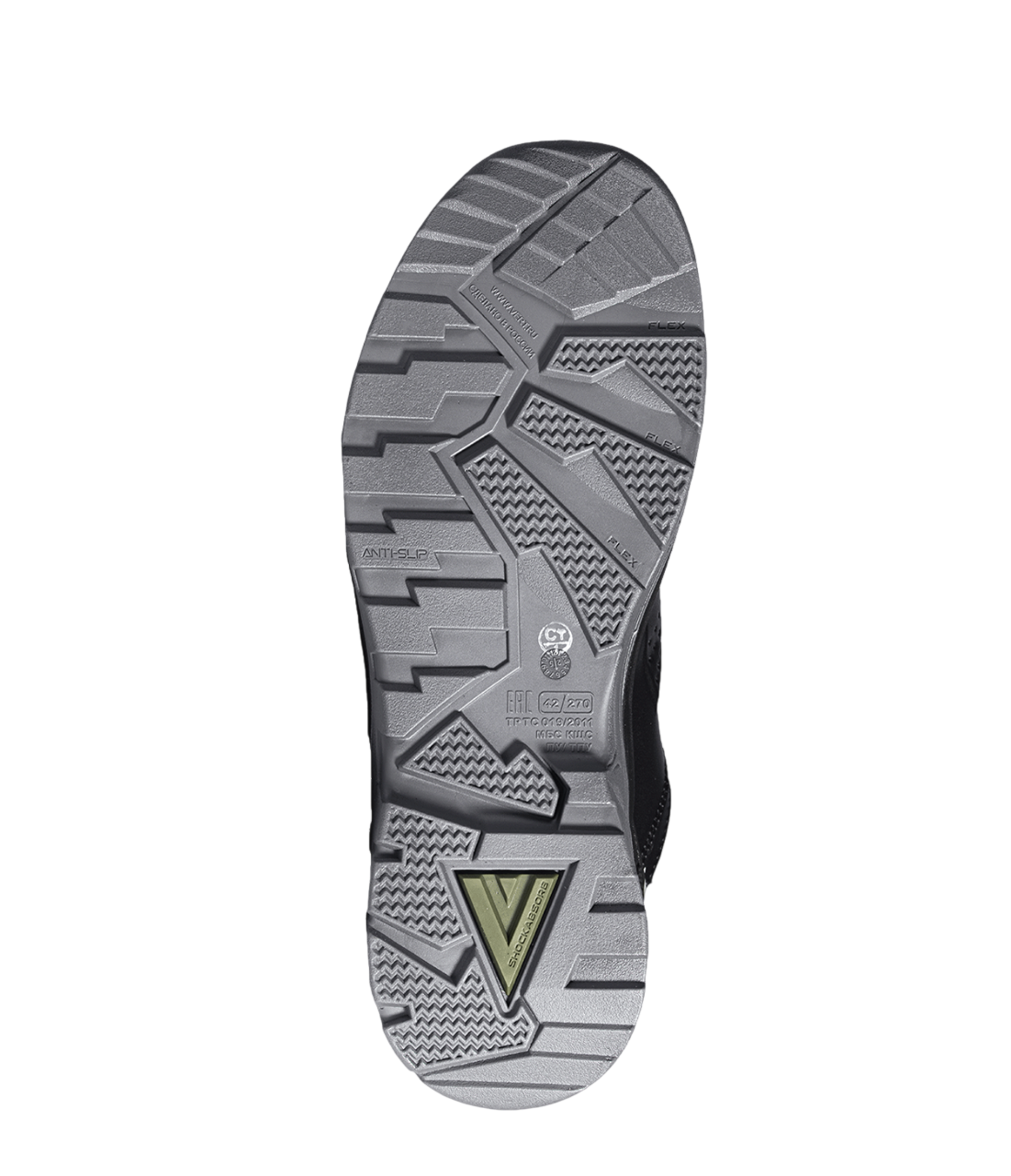 -Подошва с глубоким протектором и продуманным дизайном обеспечивает наилучшую защиту от скольжения на различных типах поверхностей, гарантируя уверенность и безопасность в каждой рабочей ситуации.