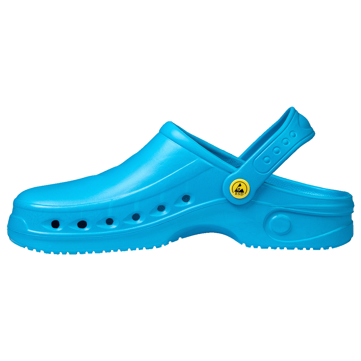 Особенности: Перекидной ремешок. Отверстия в передней части стопы выполняют функцию вентиляции. Уход за моделью можно осуществлять при помощи моющих средств, ультрафиолетом или в машинке при температуре до 40° C. ESD антистатические свойства согласно Европейской Директивы.