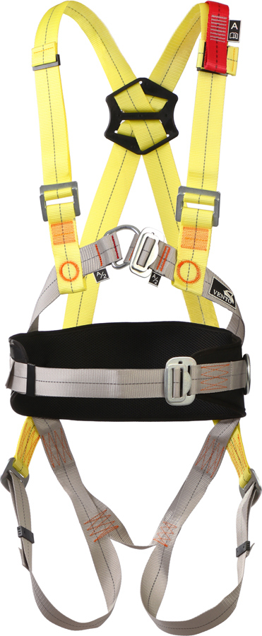 Две страховочные точки (на груди и на спине) обеспечивают правильное положение тела человека в случае срыва. Фронтальная страховочная точка, выполненная по схеме А/2, требует блокировки. Точка крепления сзади на Х-образных плечевых лямках удобна для присоединения к системе удержания при срыве.