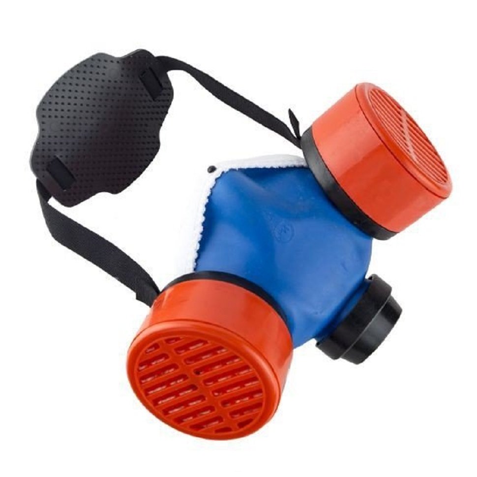 В боковых отверстиях полумаски закреплены манжеты из полиэтилена с клапанами вдоха, в которые вставляются сменные противогазовые фильтры различных марок, а в нижнем отверстии полумаски закреплён клапан выдоха, закрытый предохранительным экраном.