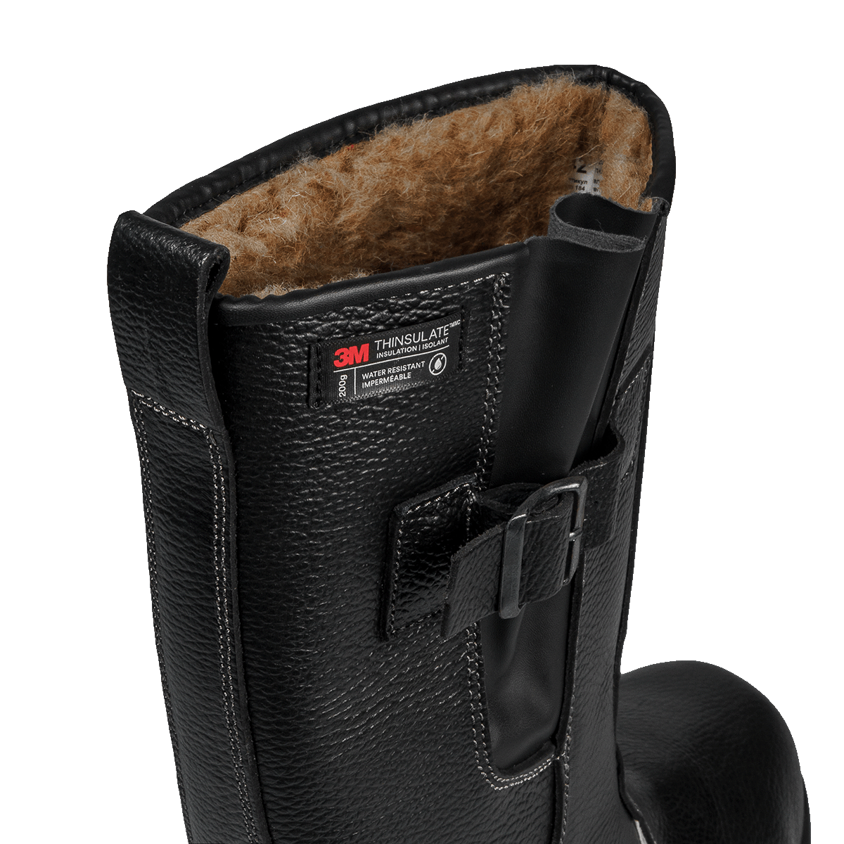 -Для удобства в эксплуатации на сапогах имеется задний наружный ремень с петлей-хлястиком из натуральной кожи.