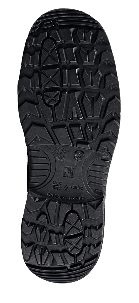 -Ходовой слой подошвы из износостойкой, термостойкой (до +300°С в течение 60 сек.), морозостойкой (-40 °С) нитрильной резины, стойкой к деформациям и истиранию.