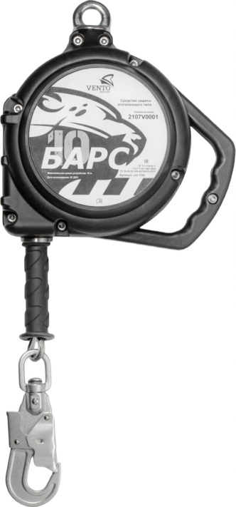 Средство защиты втягивающего типа "Барс" предназначено для организации страховочной системы при работе на высоте. По мере необходимости трос свободно выдается из устройства и автоматически наматывается обратно.