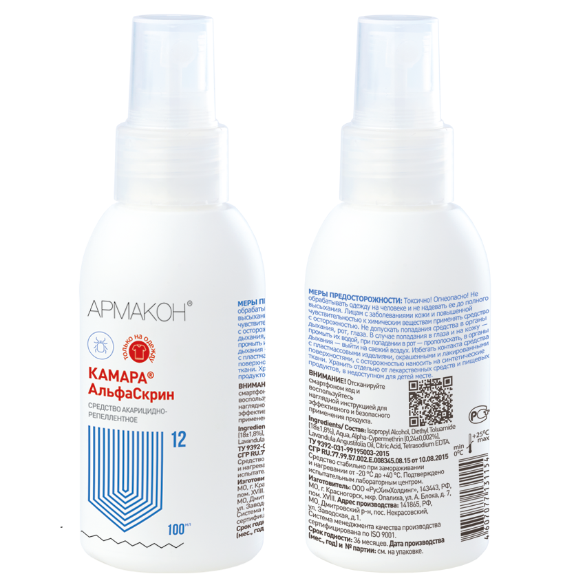 КАМАРА® АльфаСкрин относится к 1 категории эффективности репеллентных средств.