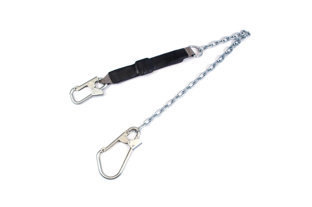 Строп из металлическоц цепи ф6 мм с амортизаторои и двумя карабинами используется как средство индивидуальной защиты от падения с высоты, может применяться как отдельная соединительная деталь, узел или компонент в системе с привязями и с анкерной точкой.