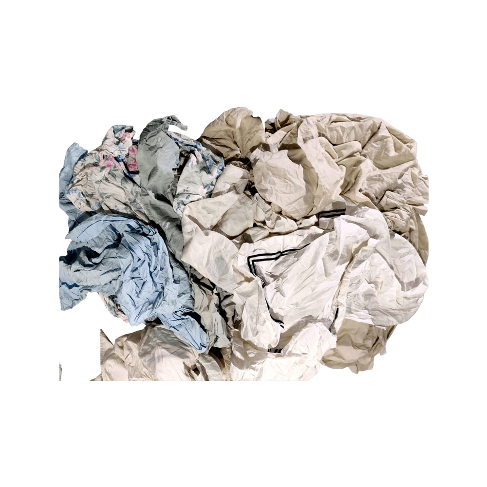 Переработанное постельное белье секонд-хенд светлых пастельных тонов (пододеяльники, простыни, наволочки, наматрасники из сатина, бязи, ситца и аналогичных гладких безворсовых тканей, допускается рисунок, занимающий не более 25% площади изделия). Крупные лоскуты неправильной формы, средний размер - до 70х80 см с минимальным количеством швов. Простыни – наиболее качественная и универсальная ветошь, является дешевой альтернативой технической салфетке и практически не уступает ей по качеству. Продукт отлично впитывает воду, краску, масло, применяется в большинстве отраслей промышленности, не оставляет ворса, может использоваться при работе с растворителями.
