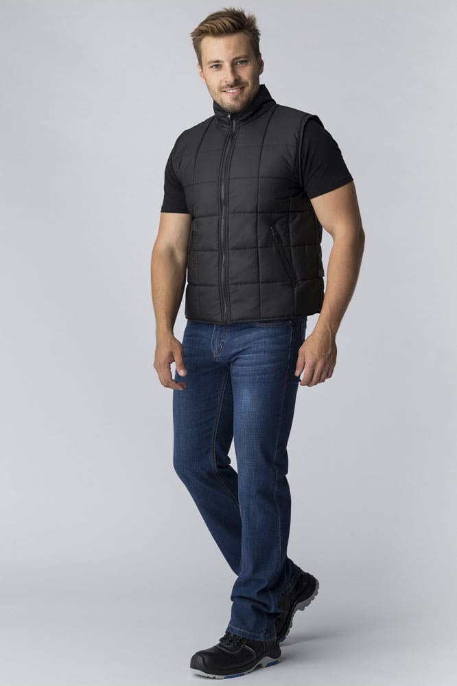 Жилет утепленный «Офис» выполнен в классическом фасоне из высококачественных материалов. Стеганый жилет прямого кроя подходит как мужчинам, так и женщинам, прекрасно садится по фигуре, выступая отличным дополнением повседневных и рабочих образов. Благодаря плотной ткани с влагоотталкивающей пропиткой жилетка надежно защищает от осадков и отличается износостойкостью. Утеплитель синтепон помогает сохранить тепло, а воротник-стойка закрывает шею от ветра. Безрукавка дополняется удобными боковыми карманами на молнии, где можно хранить необходимые мелочи или записи. Утепленный жилет отлично сочетается с брюками, джинсами, толстовками, футболками и другой одеждой, обеспечивая комфорт и тепло во время работы, прогулок, путешествий и активного отдыха. Для указания ФИО присутствует этикетка с изнаночной стороны.