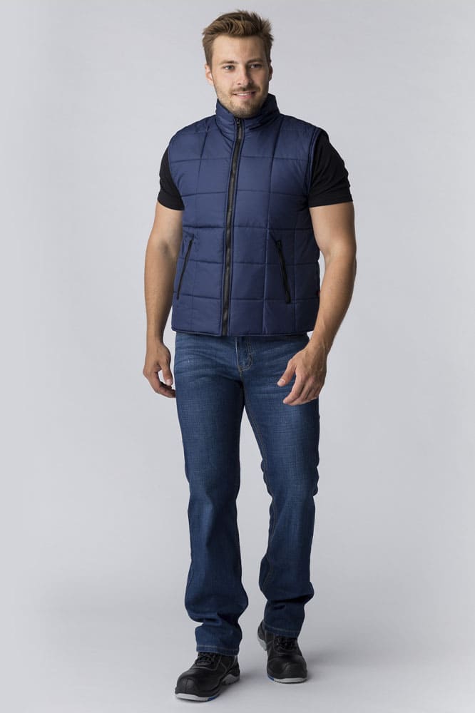 Жилет утепленный «Офис» выполнен в классическом фасоне из высококачественных материалов. Стеганый жилет прямого кроя подходит как мужчинам, так и женщинам, прекрасно садится по фигуре, выступая отличным дополнением повседневных и рабочих образов. Благодаря плотной ткани с влагоотталкивающей пропиткой жилетка надежно защищает от осадков и отличается износостойкостью. Утеплитель синтепон помогает сохранить тепло, а воротник-стойка закрывает шею от ветра. Безрукавка дополняется удобными боковыми карманами на молнии, где можно хранить необходимые мелочи или записи. Утепленный жилет отлично сочетается с брюками, джинсами, толстовками, футболками и другой одеждой, обеспечивая комфорт и тепло во время работы, прогулок, путешествий и активного отдыха. Для указания ФИО присутствует этикетка с изнаночной стороны.
