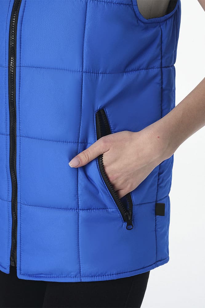 Жилет утепленный «Офис» выполнен в классическом фасоне из высококачественных материалов. Стеганый жилет прямого кроя подходит как мужчинам, так и женщинам, прекрасно садится по фигуре, выступая отличным дополнением повседневных и рабочих образов. Благодаря плотной ткани с влагоотталкивающей пропиткой жилетка надежно защищает от осадков и отличается износостойкостью. Утеплитель синтепон помогает сохранить тепло, а воротник-стойка закрывает шею от ветра. Безрукавка дополняется удобными боковыми карманами на молнии, где можно хранить необходимые мелочи или записи. Утепленный жилет отлично сочетается с брюками, джинсами, толстовками, футболками и другой одеждой, обеспечивая комфорт и тепло во время работы, прогулок, путешествий и активного отдыха. Для указания ФИО присутствует этикетка с изнаночной стороны.