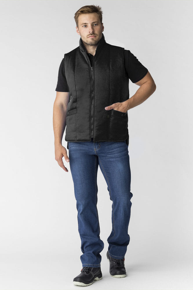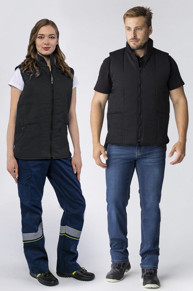 Жилет утепленный «Универсальный» предназначен для комфортной работы в холодное время года или повседневной носки на прогулках, во время путешествий и активного отдыха. Универсальный теплый жилет подходит как мужчинам, так и женщинам, прекрасно садится по фигуре и не стесняет движения благодаря боковым разрезам с округлыми углами. Удлиненная спинка полностью закрывает поясницу, препятствуя ее переохлаждению даже во время наклонов, а с помощью молнии жилет удобно надевать и снимать. Благодаря плотной ткани с влагоотталкивающей пропиткой жилетка надежно защищает от осадков и отличается износостойкостью. Утеплитель синтепон помогает сохранить тепло, а воротник-стойка закрывает шею от ветра. Безрукавка дополняется удобными боковыми карманами на кнопках, где можно размещать необходимые мелочи и расходники. Для указания ФИО присутствует этикетка с изнаночной стороны.