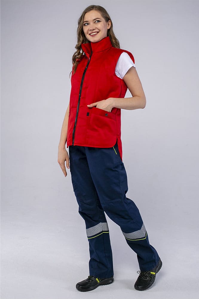 Жилет утепленный «Универсальный» предназначен для комфортной работы в холодное время года или повседневной носки на прогулках, во время путешествий и активного отдыха. Универсальный теплый жилет подходит как мужчинам, так и женщинам, прекрасно садится по фигуре и не стесняет движения благодаря боковым разрезам с округлыми углами. Удлиненная спинка полностью закрывает поясницу, препятствуя ее переохлаждению даже во время наклонов, а с помощью молнии жилет удобно надевать и снимать. Благодаря плотной ткани с влагоотталкивающей пропиткой жилетка надежно защищает от осадков и отличается износостойкостью. Утеплитель синтепон помогает сохранить тепло, а воротник-стойка закрывает шею от ветра. Безрукавка дополняется удобными боковыми карманами на кнопках, где можно размещать необходимые мелочи и расходники. Для указания ФИО присутствует этикетка с изнаночной стороны.